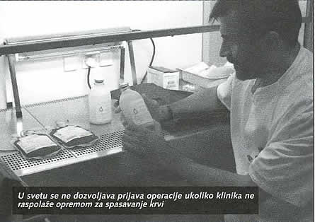 Institut za kardiovaskularne bole sti na Dedinju ima pet aparata za autotransfuziju i razlikuje se od ostalih kardiohirur�kih ku�a i drugih klinika jer, od 25.000 kesa transfuzije, koliko se potro�i na operacije, ova ku�a od Zavoda za transfuziju uzme tek 2.200, �to je zanemarljiva koli�ina.