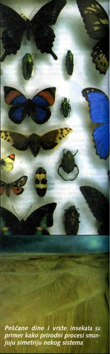 Taj princip je poznat fizičarima i matematičarima kao princip «narušavanja simetrije». Jedan primer je formiranje peščanih dina. U matematički idealnom slučaju, uniformni vetar koji bi duvao kroz uniformnu pustinju proizveo bi paralelne peščane brazde. Jednolika pustinja je potpuno simetrična u ravni: rotirajte je pod bi!o kojim uglom i ona će izgledati isto. Vetar, međutim, smanjuje nivo simetrije. Paralelne brazde dina uvode u pejzaž definisan pravac, ili orijentaciju. Takvo narušavanje simetrije se, tako reći, samo od sebe dešava svuda u prirodi.