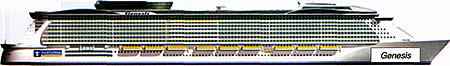 Zasad pod projektnim imenom sa biblijskim prizvukom - "Cenesis" (Postanje) - brod težine 220.000 bruto registarskih tona, koji će graditi najveći evropski brodograditelj finska firma "Aker Vards", moći će da primi 5.400 (maksimalno 6.400) putnika, stoje dvostruko više od kapaciteta trenutno najvećeg prekookeanskog broda ,,Queen Mary 2". „Genesis" će veličinom, i to za čak 43 odsto, premašiti i novog džina, „Freedom of the Seas", koji je u avgustu izašao iz istog brodogradilišta, a prve putnike treba da primi u junu.