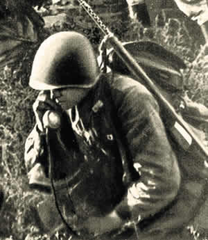 | Poručnik Džon Mulin je provodio još jednu noć u labolatoriji mernog centra veze Kraljevskih vazduhoplovnih snaga (RAF) u Farnborou, u južnoj Engleskoj. Rođen u San Francisku, kao inženjer elektrotehnike koji je završio studije na Univerzitetu Santa Klara, priključio se kao dobrovoljac američkoj vojsci 1941. godine. Po zadatku, njegova jedinica veze koju su uglavnom činili stručnjaci za elektroniku i radio-tehniku je, kao deo Savezničkih snaga, bila je stacionirana u Engleskoj 1943. i 1944. godine. Njeni pripadnici su radili na usavršavanju savezničkih radarskih sistema. |