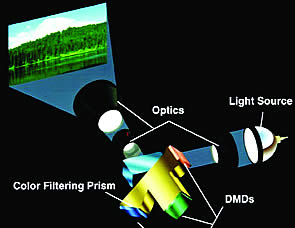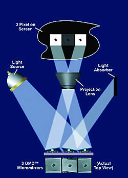 DLP televizori predstavljaju privlačan izbor jer su jeftiniji od televizora sa plazma ekranom iste veličine. U središtu DLP sistema nalazi se digitalno mikro - ogledalo (DMD - digital micromirror device). DMD je sićušno i može stati na dlan šake. Ali, ako se pobliže pogleda kada je u radu, ono što se vidi podseća na fotomozaik. Kada se pogleda fotomozaik, vide se grupe malih kvadratnih fotografija. Odmicanjem od mozaika, fotografije se stapaju i stvaraju veliku sliku. Isto se događa i sa DMD, osim što ovi koriste svetlost umesto fotografija. Ako se bliže osmotri DMD, vide se minijaturna ogledala kvadratnog oblika koja odbijaju svetlost. Iz veće udaljenosti, primećuje se slika.
