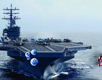 Boravak na nosaču aviona „ Ronald Regan ” je kao odlazak u posetu plovećem vojnom aerodromu. Paluba namenjena za poletanja i sletanja pokriva površinu od 1.82 ha, dužina joj je 333 m što je jednako visini Empajer Stejt Bildinga...