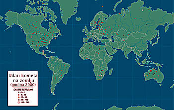 Osim nuklearnog rata, gubljenja ozonskog omotača i zagađivanja okoline, najveća opasnost za čovečanstvo dolazi sa neba. Da na Zemlji vetar, voda i geološka aktivnost ne brišu tragove udara, njena površina bi, poput Mesečeve, bila posejana kraterima. Mada je na Zemlji erozija izbrisala mnoge ožiljke, danas znamo za više od 230 udarnih kratera, koje astronomi često zovu i astrobleme, što ustvari znači «zvezdane rane». Najveći od njih, kao što su Sadberi u Kanadi, star milijardu i osam stotina miliona godina, imaju prečnik od oko 200 km.