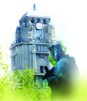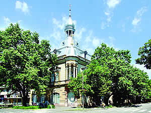 Grad se nalazio u raznim carstvima a jednom je ceo u požaru izgoreo . Od vremena tog požara na gradskoj kući podignut je toranj koji služi isključivo u vatrogasno - obaveštavajuće svrhe . Dominira i estetski određuje gradski pejsaž . Ispred Gradske kuće je park i u parku fontana ; na mestu fontane nalazile su se biste raznih monarha koji su vladali ovim prostorima .