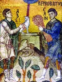 Kajin je bio ratar a Avelj pastir. Stariji brat Kajin je kao žrtvu bogu prineo deo svog roda a Avelj nešto od svoje stoke. Kajin je bio veoma razljućen time što je bog primio žrtvu od mlađeg brata stočara a ne i od njega. Otud je stariji brat ubio Avelja.