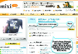 Facebook je u Japanu krenuo sredinom 2008. godine. Da bi otežali posao konkurentima sa zapada, na Miksiju je uvedena mogućnost davanja poruka do 150 slova, poput Twiter-a. Twiter ima nešto veći uspeh u Japanu od Facebook-a i petostruko više korisnika.