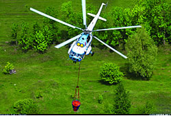 Pomenuti način gašenja požara koristi se i u Srbiji, a za te potrebe se koristi helikopter ruske proizvodnje „mil-8“ koji ima mogućnost nošenja vedra zapremine do 2.500 l.