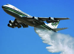 Početkom veka, u SAD su počeli sa prilagođavanjem jednog „boinga 747“ za potrebe letelice za borbu protiv požara. U razvoju se uspelo pa je napravljena letelica sa kapacitetom rezervoara za smeštaj tečnosti za gašenje od čak 90.000 l. Avion poseduje sistem koji prazni rezervoar pod određenim pritiskom i time stvara efekat sličan kiši, a u jednom naletu može da pokrije površinu širine od oko 100 m i dužine od gotovo 5.000 m. Prednosti teških i super-teških aviona za gašenje požara su veliki kapacitet rezervoara, velika brzina leta i veliki dolet. Na drugoj strani je veoma mali dnevni broj posipanja ugroženog terena zbog dugog vremenu punjenja rezervoara i posebnih zahteva vezanih za aerodrom sa kojih je moguće koristiti ove avione.