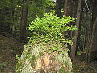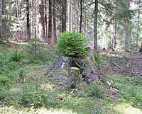Uljez. Stablo borovnice poraslo na trulom panju. Čak je dalo i plodove. |