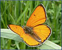 2) Ovog puta reč je o leptiru koji kod nas nije redak, pa postoji velika mogućnost da ga vidite. To je mali leptir jarkih boja koji spada u porodicu plavaca. Istina, plavi nisu ni mužjak ni ženka, već predivne oranž boje koja znatno olakšava nala-ženje ovog leptira. Jedino plavo na njemu je povremeno vidljiv plavičasti ton na donjoj strani krila.