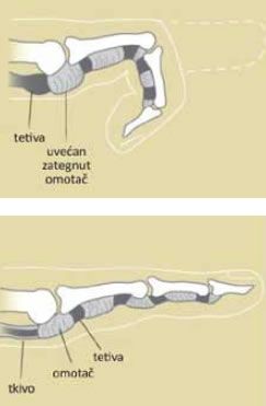 Takodje, u reumatizmu se, kao posledica bolesti, često javljaju povrede tetiva prstiju na raznim nivoima: takozvani malet finger, što je posledica pucanja tetive u donjem zglobu prsta, kao i Butonijer deformitet, izazvan pucanjem centralne tetive u srednjem zglobu. Ove povrede je potrebno prepoznati i lečiti na vreme da ne bi došlo do trajnih deformiteta.