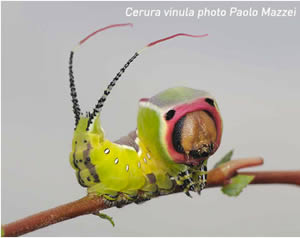 Ovaj način odbrane je izrodio neke gotovo neverovatne vrste kao što je gusenica noćnog leptira Cerura vinula . Kada je u opasnosti, ova gusenica bizarnog izgleda okreće prednji deo svog tela ka napadaču pokazujuci svoje lažne oči. Zadnji par lažnih nogu je pretvoren u bičolike izraštaje kojim gusenica maše u trenutku opasnosti i, ako sve ovo nije dovoljno da uplaši napadača, u stanju je i da ga isprska mravljom kiselinom iz glavenog regiona.