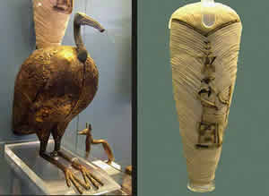 Istraživanja su pokazala da su stari Egipćani često uklanjali i balsamovali pluća i organe za varenje, a zatim ih vraćali nazad kako bi oni funkcionisali u zagrobnom životu. Egipćani su, očigledno, verovali da i ptice ibis odlaze nakon smrti na drugi svet. Dokaz za to predstavlja hrana koju su „pakovali u ptice“ . |