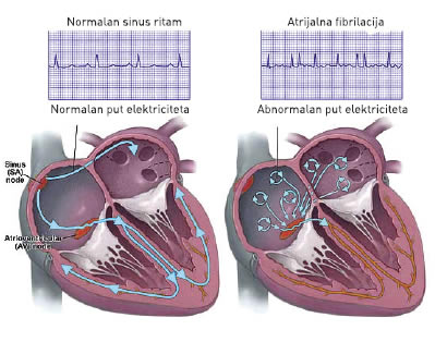 Atrijalna fibrilacija (AT) je najučestalija srčana aritmija u kliničkoj praksi. Reč je o pretkomorskoj aritmiji koja se može javiti na prividno potpuno zdravom srcu, ali i kada je srčani mišić više ili manje već oštećen drugim bolestima. Pojava AT najčešće ne ugrožava život neposredno, ali nepravilan i ubrzan srčani rad obično uzrokuje izražene simptome i vremenom može da dovede do niza komplikacija.