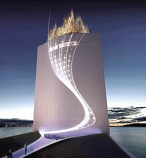 Na vrhu tornja goreće olimpijski plamen. A unutar konstrukcije biće smešteni auditorijum, amfiteatar, kafeterije i butici. Liftovi će voditi do nekoliko vidikovaca. Radiće i platforma za benžo skakanje. Sama struktura konstrukcije vidljiva je na slici 2, kao presek kroz unutrašnju strukturu, gde se vide pogonski elementi, stepeništa i liftovi, kao i amfiteatar i drugi sadržaji tornja.