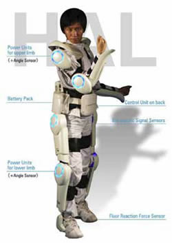 hal 5 japanske kompanije Cyberdyne je lagane i kompaktne konstrukcije, mase 23 kg, pokretan litijumskim baterijama u trajanju od 5 časova. Reguje preko senzora električnih neuro-impulsa koje mozak šalje ka mišićima a koje računarski sistem obrađuje i potom šalje komande elektromotorima. Od svih konstukcija u svetu, jedini je ušao u ograničenu serijsku proizvodnju - do 2012. isporučeno je oko 300 primeraka. Moguća godišnja proizvodnja iznosi 500 primeraka. Za sada je isporučivan samo medicinskim centrima za rehabilitaciju nepokretnih osoba.