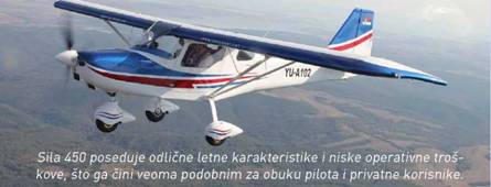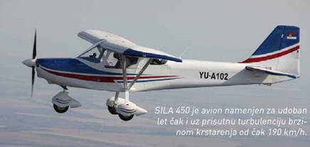 Za razliku od konkurentskih letelica proizvodi se od konvencionalnih materijala, aluminijuma i hrom molibdena, zahvaljujući kojima je otporniji na temperaturne razlike i ima duži vek trajanja. Avion je konstruisan tako da postoji potpuno odsustvo vibracija, što za posledicu ima bolji komfor od sličnih letelica, bolju stabilnost i preciznije letenje. Prvi model od planirana tri nosi naziv SILA 450C , koji je avion ultralake kategorije proizveden po svim standardima generalne avijacije. SILA 450C je jednomotorni visokokrilac, kapaciteta dva sedišta a osnovna namena mu je obuka pilota, turistički, panoramski i poslovni letovi. Avion ima raspon krila od 9,4 m, dugačak je 6,6 m, brzina krstarenja je 190 km/h a maksimalni dolet od 1.060 km. Avion karakteriše i veoma mala masa prazne letelice od 290,7 kg dok je maksimalna masa na poletanju 472,5 kg.