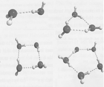 Sistemi oblika (H 2 O ) n u literaturi se nazivaju “klasteri”. Broj mogućih klastera oblika (H 2 O ) n je veoma velik, i može se odrediti metodama teorije grafova. Na primer za n = 8 broj klastera je 164461.