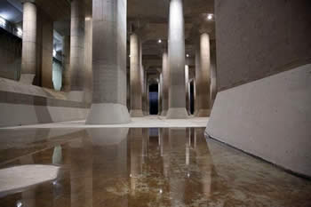 U Tokiju je, između 1993. i 2006. ispod stadiona napravljen kompleks tunela. Cena ovog građevinskog poduhvata je tri milijarde dolara. Jedan od rezervoara za vodu je dugačak oko sto metara a sam tunel se prostire na oko 6 km. Sistem ima pet rezervoara i nalazi se na perifeiji prestonice. Opremljen je sa četiri turbine sa avionskim motorima koje izbacuju višak vode u reku Edo.