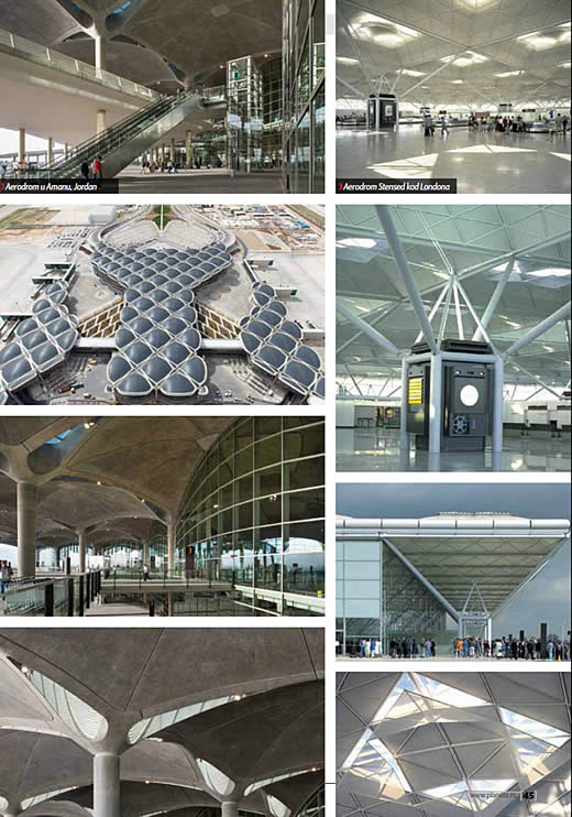 Vazdušne luke velikih gradova obeležja su razvijene civilizacije i ishodišta vazdušnog saobraćaja koji je simbol brzine i komunikativnosti. Često i mesta važnih susreta i događaja, rešavanja ključnih međudržavnih i privrednih problema, neophodna spona u vremenu velikih brzina i neočekivanih obrta. Londonski aerodrom Stansted građen od 1981. do 1991. jedan je od najinteresantnijih i najnagrađivanijih objekata u svetu. Ovaj aerodrom dobio je dosad 22 priznanja, počev od nagrade Kraljevskog društva arhitekata V. Britanije, nagrade za dizajn, za upotrebu i ugradnju specijalnih materijala i stakla, za konstrukciju i ekonomičnost. Zahvaljujući konceptu konstrukcije i zenitalnom dnevnom osvetljenju, koje je dobijeno dizajnom krovne konstrukcije sa zarotiranim kvadratima i specijalnim staklom, uštede u finansijskom delu investicija su najmanje 15% u odnosu na cene sličnih objekata. Ovaj aerodrom obuhvata površinu od 85.700 m2. Visina krovnog pokrivača je 15 m, a kapacitet mu je oko 3.700 osoba.