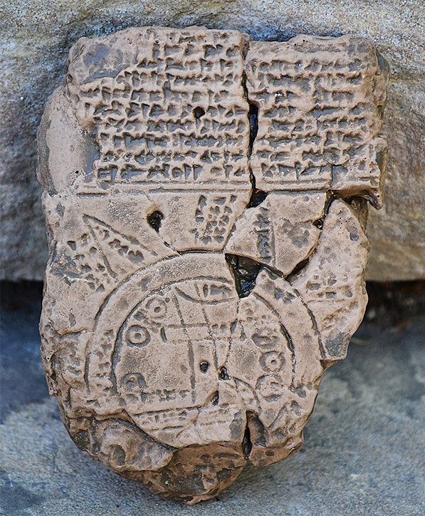 na najstarijoj mapi sveta, vavilonskoj glinenoj ploči koja su čuva u Britanskom muzeju