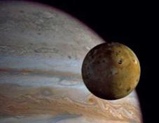 The other Jupiter's moon, Io, is also very active. There are constantly volcanic eruptions on its surface releasing electrified particles of sulphur and oxygen into the space. |