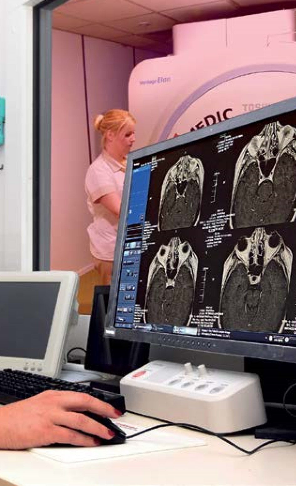 Neuroradiolog dr Katarina Kačar kaže da, bez magnetne rezonancije, nema savremene neurologije i neurohirurgije. Ova metoda je nezamenjiva u dijagnostici dijagnostici patologije kompletnog aksijalnog skeleta - glave i kičmenog stuba, uključujući centralni nervni sistem (mozak) i krvne sudove glave i vrata, kao i kičmenu moždinu. U okviru neurološke patologije, MRI je apsolutno suverena metoda kad je reč o demijelizacionim lezijama (oštećenjima nervnog omotača mijelina), a pre svega multiploj sklerozi, autoimunoj bolesti sa vrlo raznolikom kliničkom slikom, koja je jedna od glavnih indikacija za MRI. Metoda je, prema rečima dr Kačar, posebno značajna i za diferencijalnu dijagnozu tzv. fokalnih promena (u jednom „žarištu“) u mozgu, kao i ekspanzivnih lezija mozga. Kad je reč o problemima kičmenog stuba i kičmene moždine - diskopatijama i mijelopatijama - MR je dominantna dijagnostička metoda. Zahvaljujući magnetnoj rezonanciji, ranije vrlo neprijatan rendgenski pregled cerebrospinalnog likvora (tečnosti u i oko mozga, i u kičmenom kanalu), koji je uključivao bolnu proceduru ubrizgavanja kontrasta u kičmeni kanal, danas se obavlja krajnje komforno po pacijenta. Govoreći o napretku MRI u neuroradiologiji, u poslednjih deceniju i po, dr Kačar ukazuje na razvoj takozvanih difuzionih tehnika, a posebno difuzioni tenzor imidžing (DTI), zatim na magnetnu spektroskopiju SWI (Susceptibility Weighted Imaging - SWI), i funkcionalnu magnetnu rezonanciju (fMRI).