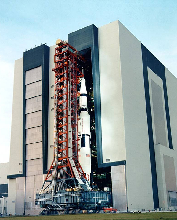 Raketa „saturn 5“ je sklapana od pojedinačnih stepena u montažnoj zgradi VAB (Vertical Assembling Building), visokoj oko 200 m. Ukupna visina „saturna 5“ sa kosmičkim brodom „apolo“ i raketnom kulom za spasavanje kapsule na vrhu iznosila je 111m.